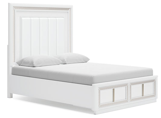 Chalanna California King Upholstered Storage Bed with Mirrored Dresser, Chest and Nightstand