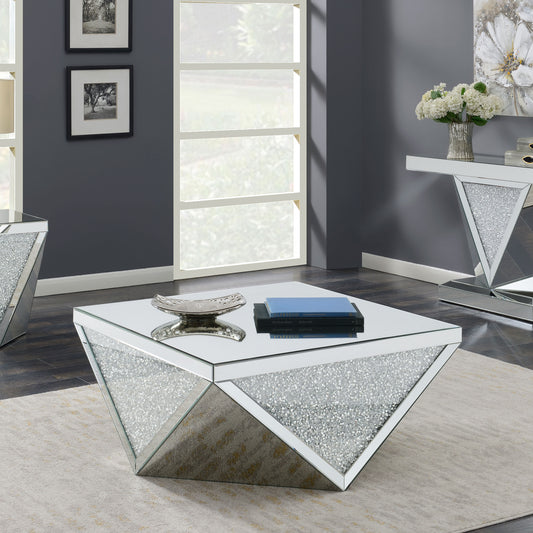 Amore Square Mirrored Acrylic Crystal Coffee Table Silver