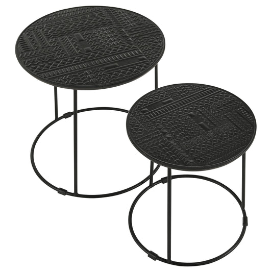 Loannis 2-piece Round Mango Wood Nesting Table Matte Black