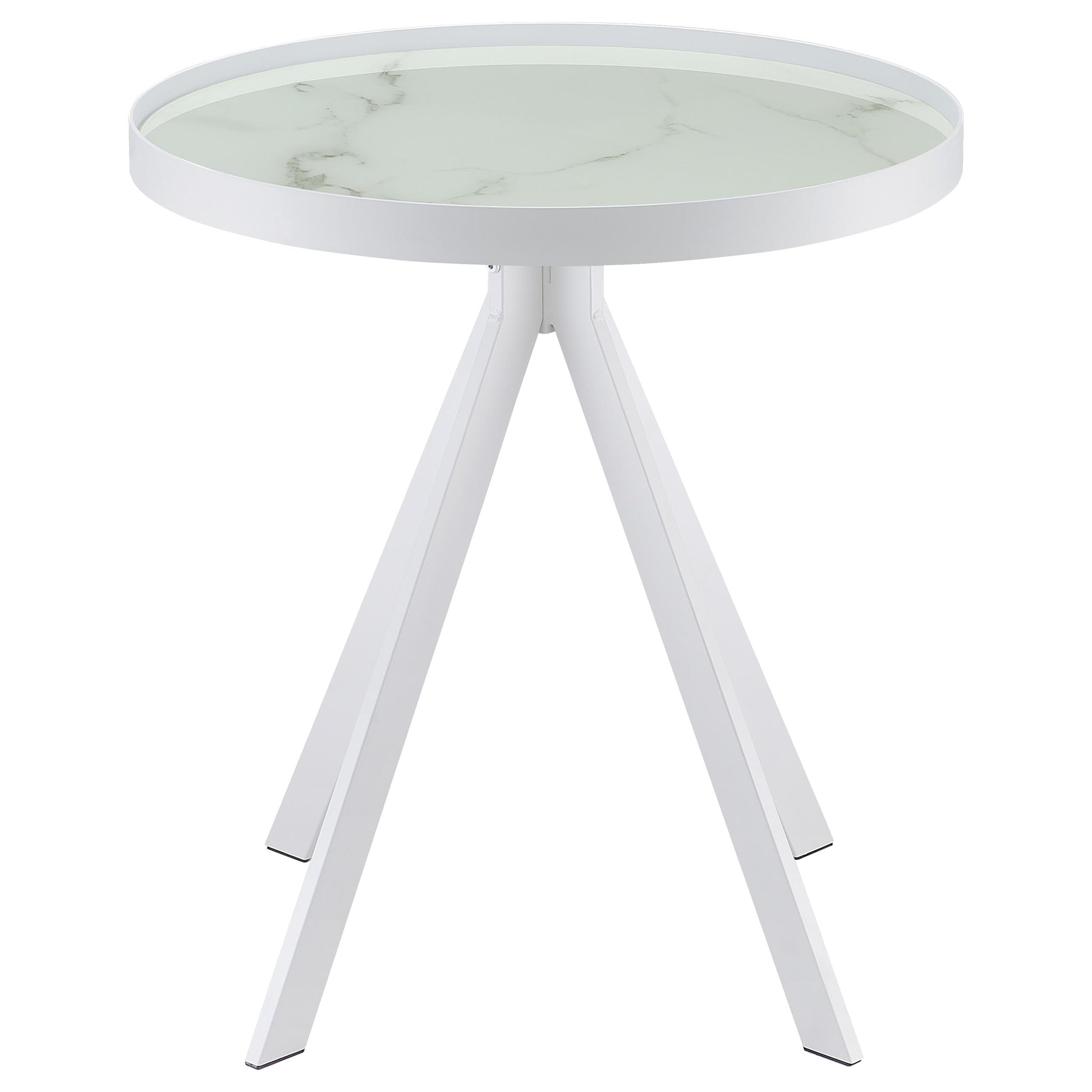 Briggs Round Marble Printed Glass Top Coffee Table White