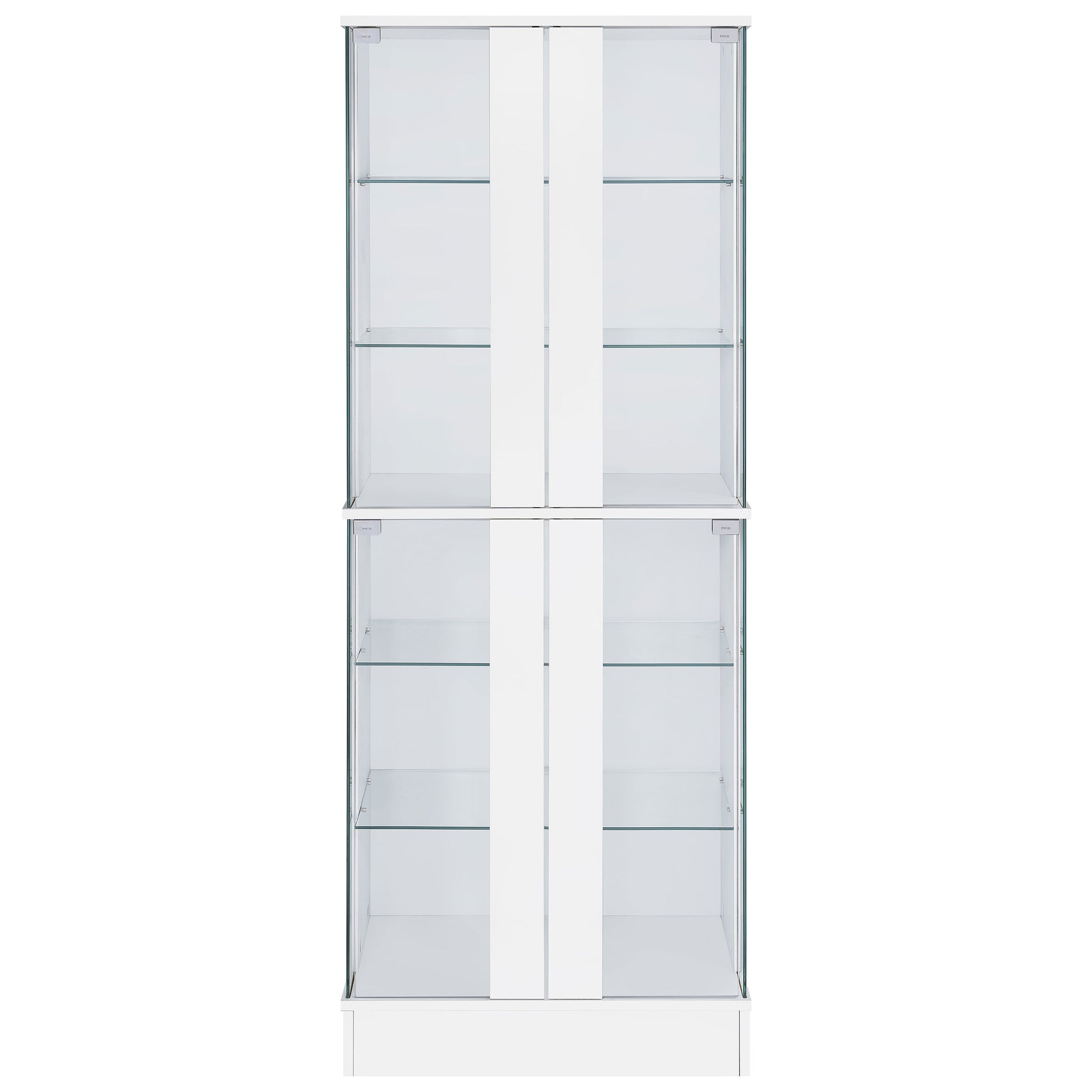 • Two-door design with six tiers of shelving for ample display space