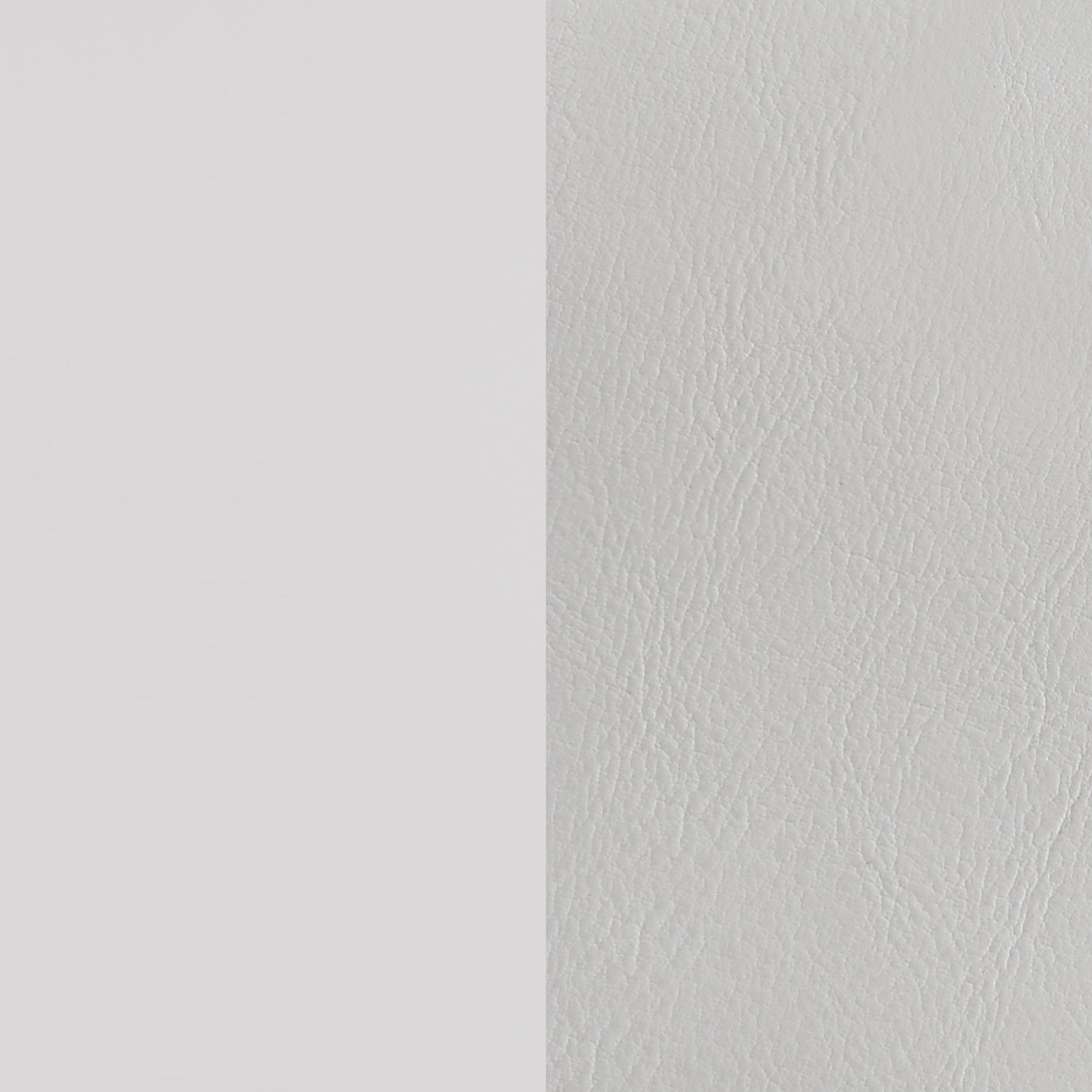 • Queen bed in high gloss white finish with bold chevron-tufted faux leather headboard panel