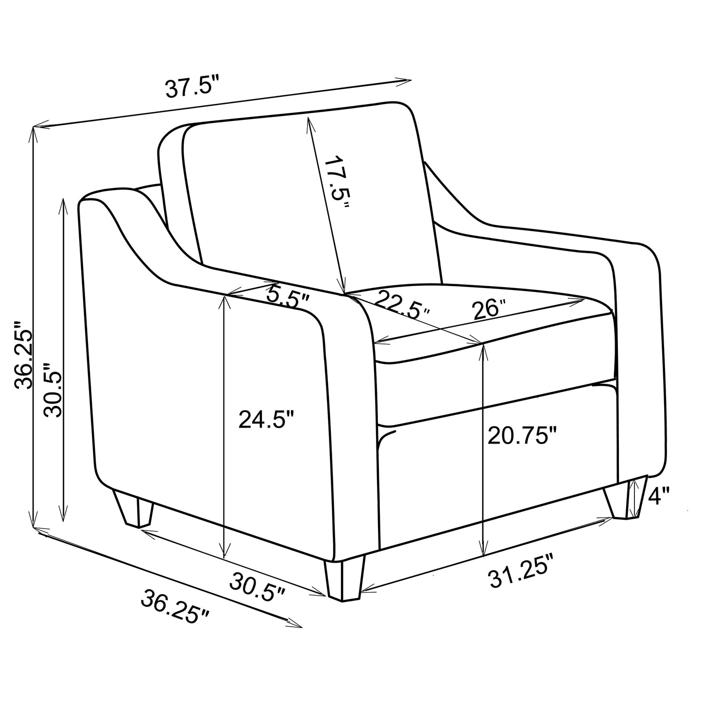 • Dark brown tapered legs add contrast and elegant support