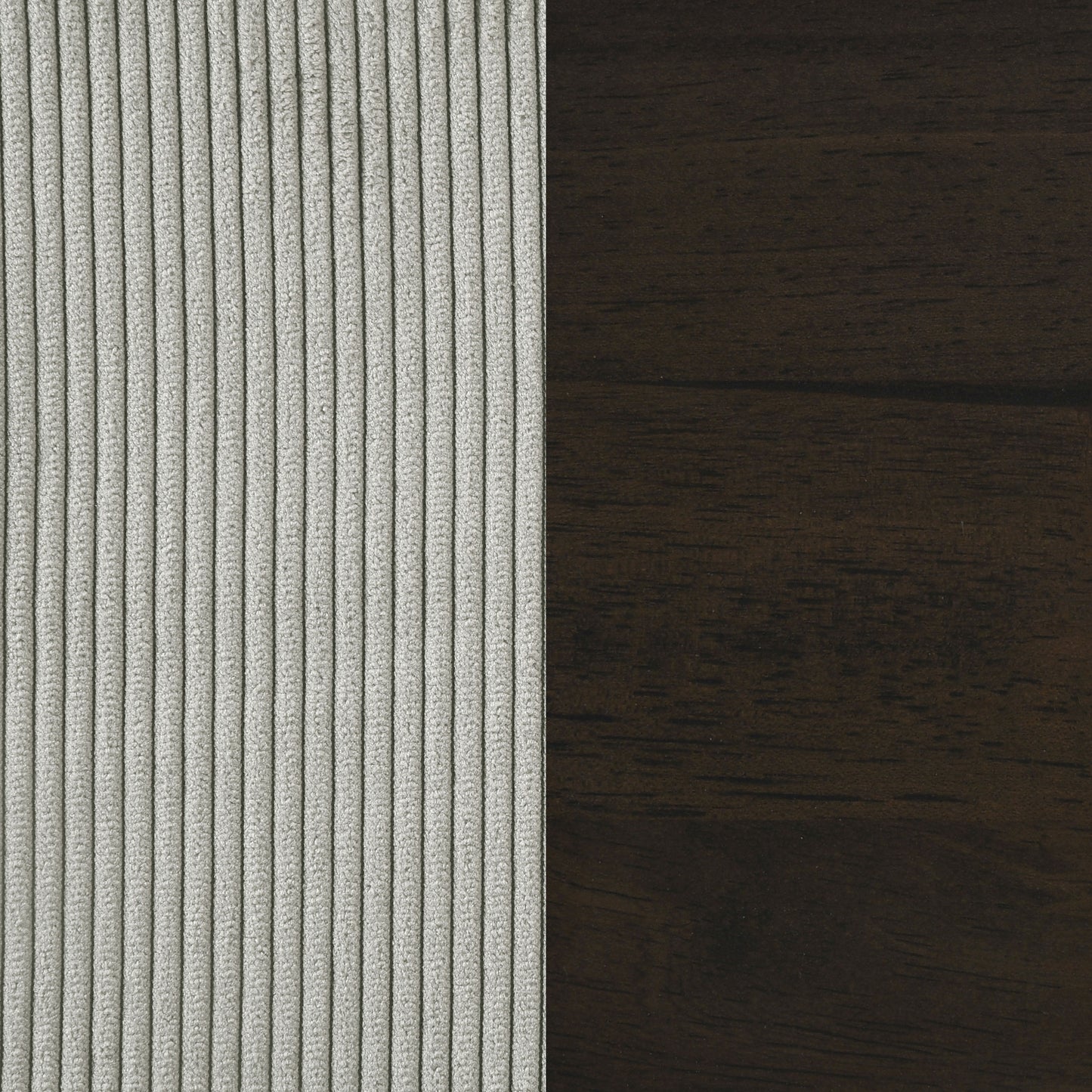 • Timeless silhouette features tapering dark brown finished wooden legs and wide, straight track arms