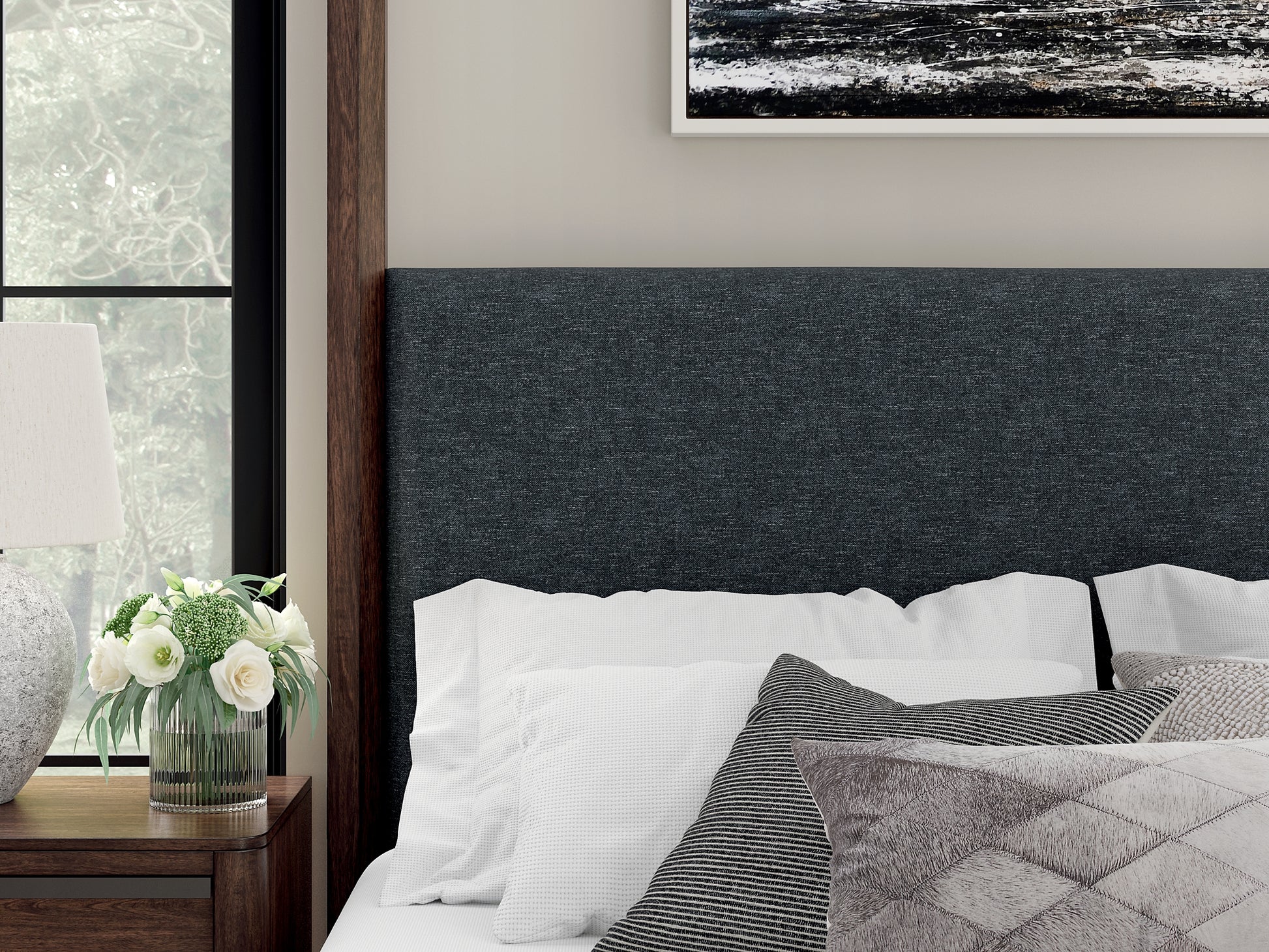 Details | Includes canopy, upholstered headboard, footboard, rails, posts and slats, Made with hardwood solids, mango wood veneer and MDF substrates , Side rails feature laminated solid hardwood slat support rails (or LVL) with glued and screwed blocking for added strength, Complex, rich dark brown finish, Foam headboard cushion with polyester upholstery , Measure room, including ceiling height, to ensure bed clears fans and light fixtures, Foam cushion with polyester upholstery , Foundation/box spring required, sold separately , Mattress available, sold separately , USB-A and USB-C charging ports, Power cord included; UL Listed, Assembly required | |