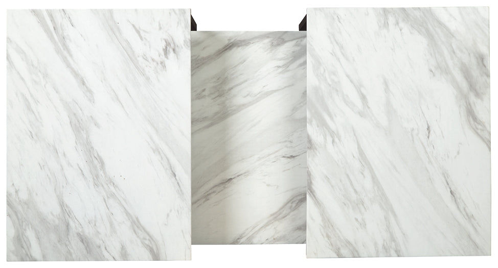 | Details | Made of decorative laminate, engineered wood and metal, Set of 3, Faux Carrera marble top and shelf, Nesting design, Tubular metal frame with black powder coated finish, Assembly required | |