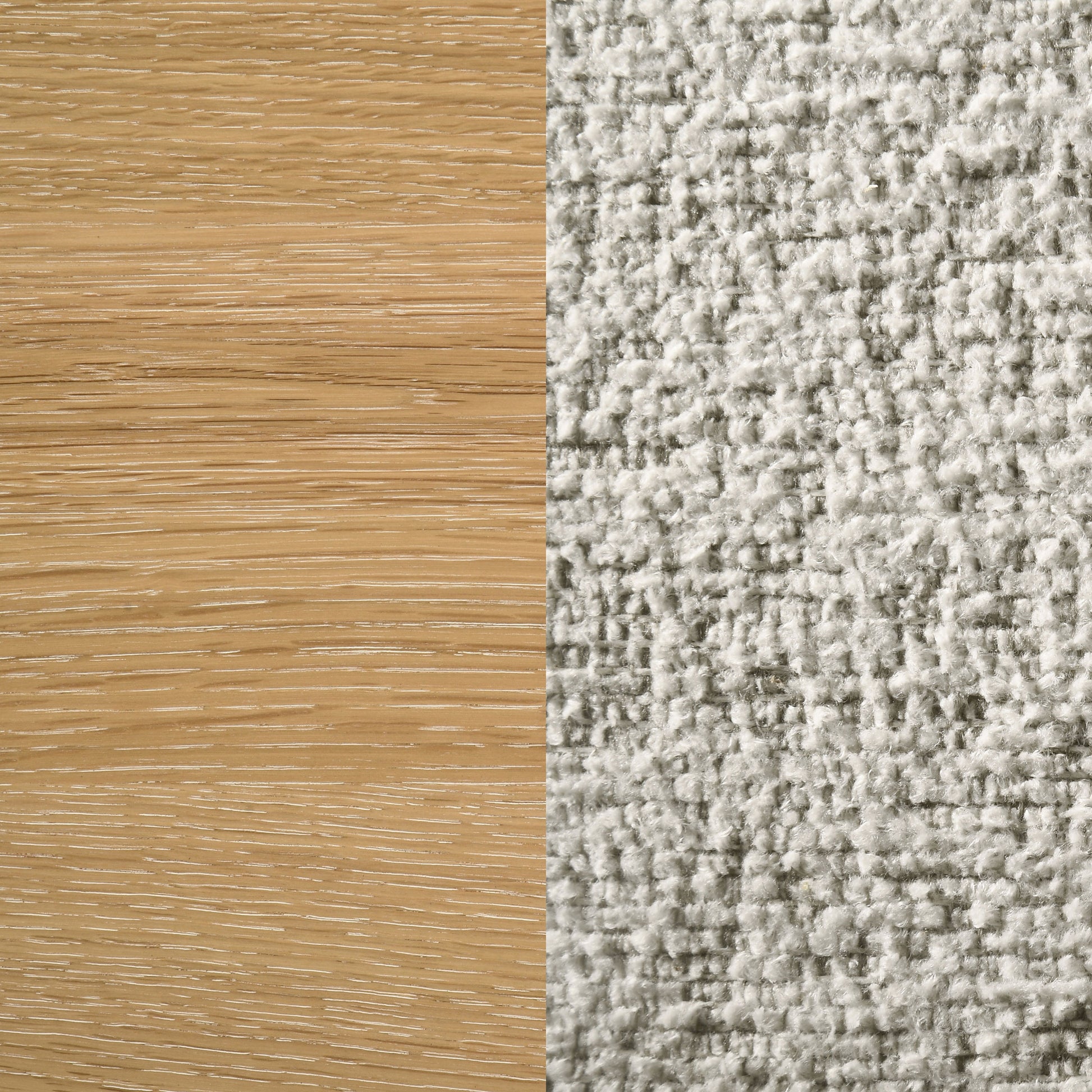 • Soft padded seat upholstered in textured oatmeal bouclé for cozy daily comfort