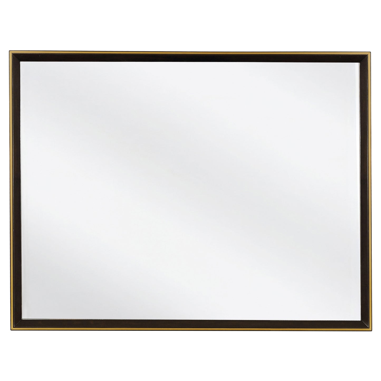 • Gold-finish hardware adds contrast to dark wood and fabric surfaces