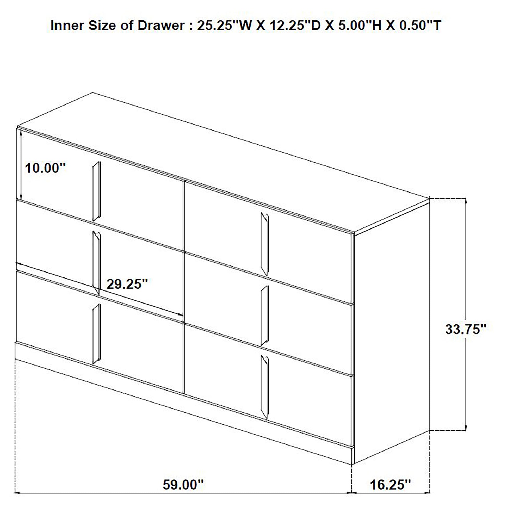 Ines 6-drawer Bedroom Dresser Cabinet White High Gloss