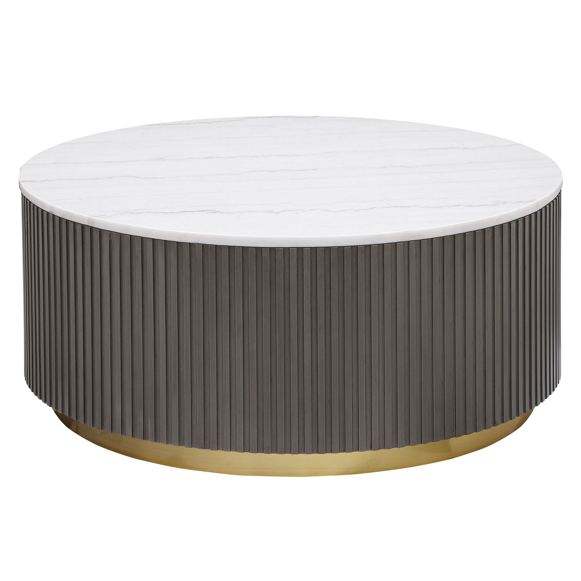 • Round coffee table with a genuine white marble top and engineered wood frame