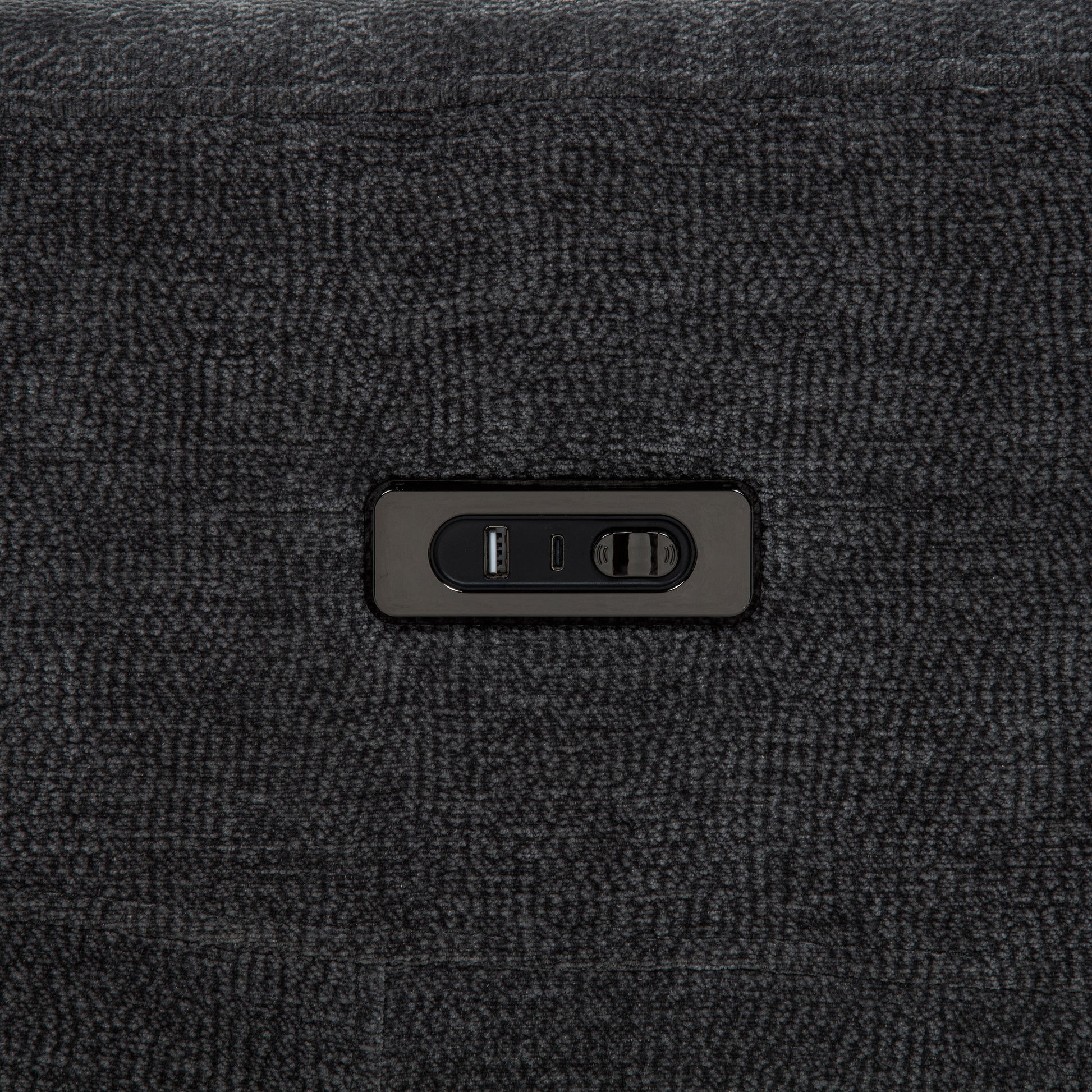 • Dark grey chenille upholstery adds softness and a subtle textured visual appeal