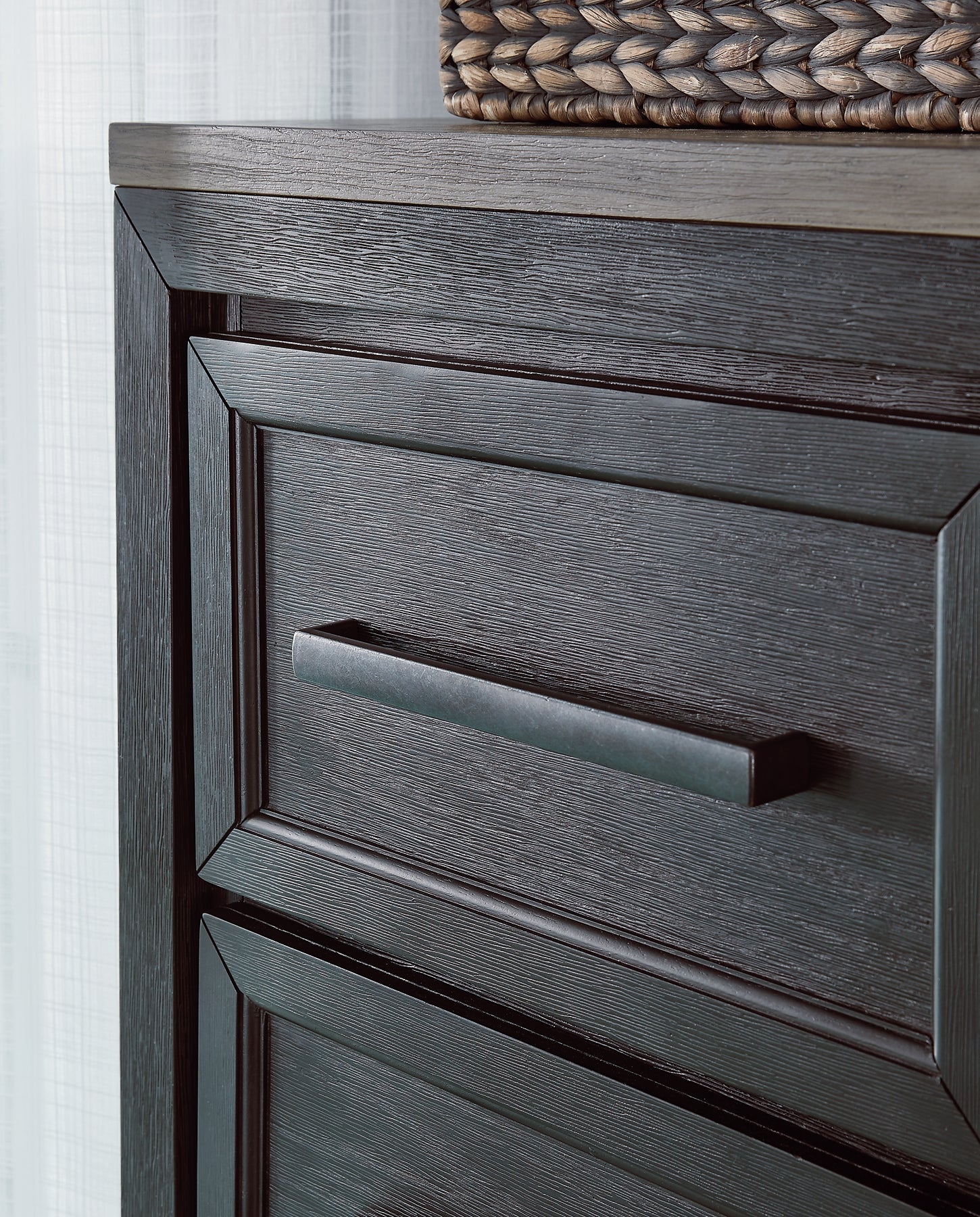 | Details | B989B4: Includes king panel headboard, storage footboard and rails with roll slats, Made with hardwood solids, select oak veneers and engineered wood, Two-tone finish (brushed black and dusty grayish brown wood tone), Headboard with picture frame moulding, Footboard with two deep drawers, Smooth-gliding soft-close drawers with fully finished interiors and dovetail construction, Sleek drawer pulls with black finish, Bed does not require additional foundation/box spring; accommodates most zero clearance adjustable bases with the addition of a bunkie board, Mattress available, sold separately, Assembly required, B989B1: Includes dresser and mirror, Made with hardwood solids, select oak veneers and engineered wood, Two-tone finish (brushed black and dusty grayish brown wood tone), Sleek drawer pulls with black finish, 11 soft-close, smooth-gliding drawers with fully finished interiors and dovetail construction (top drawers felt lined), 5 drawers with brushed black finish; 6 drawers with grayish brown wood tone, 3 drawers located behind each door, Mirror mounts to back of dresser, Assembly required, B989-48: Made with hardwood solids, select oak veneers and engineered wood, Two-tone finish (brushed black and dusty grayish brown wood tone), Sleek drawer pulls with black finish, 5 soft-close, smooth-gliding drawers with fully finished interiors and dovetail construction (top drawers felt lined), 3 pull-out trays (felt lined) and 2 adjustable shelves behind door, | |