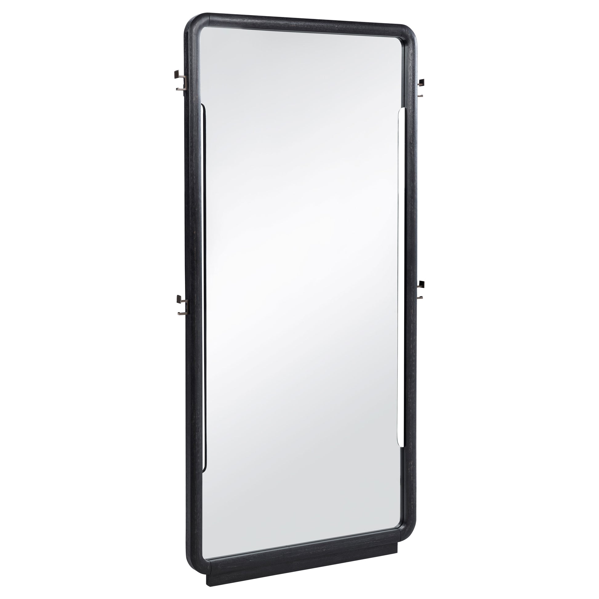 • Full-length floor mirror with burnished black frame and softly rounded corners