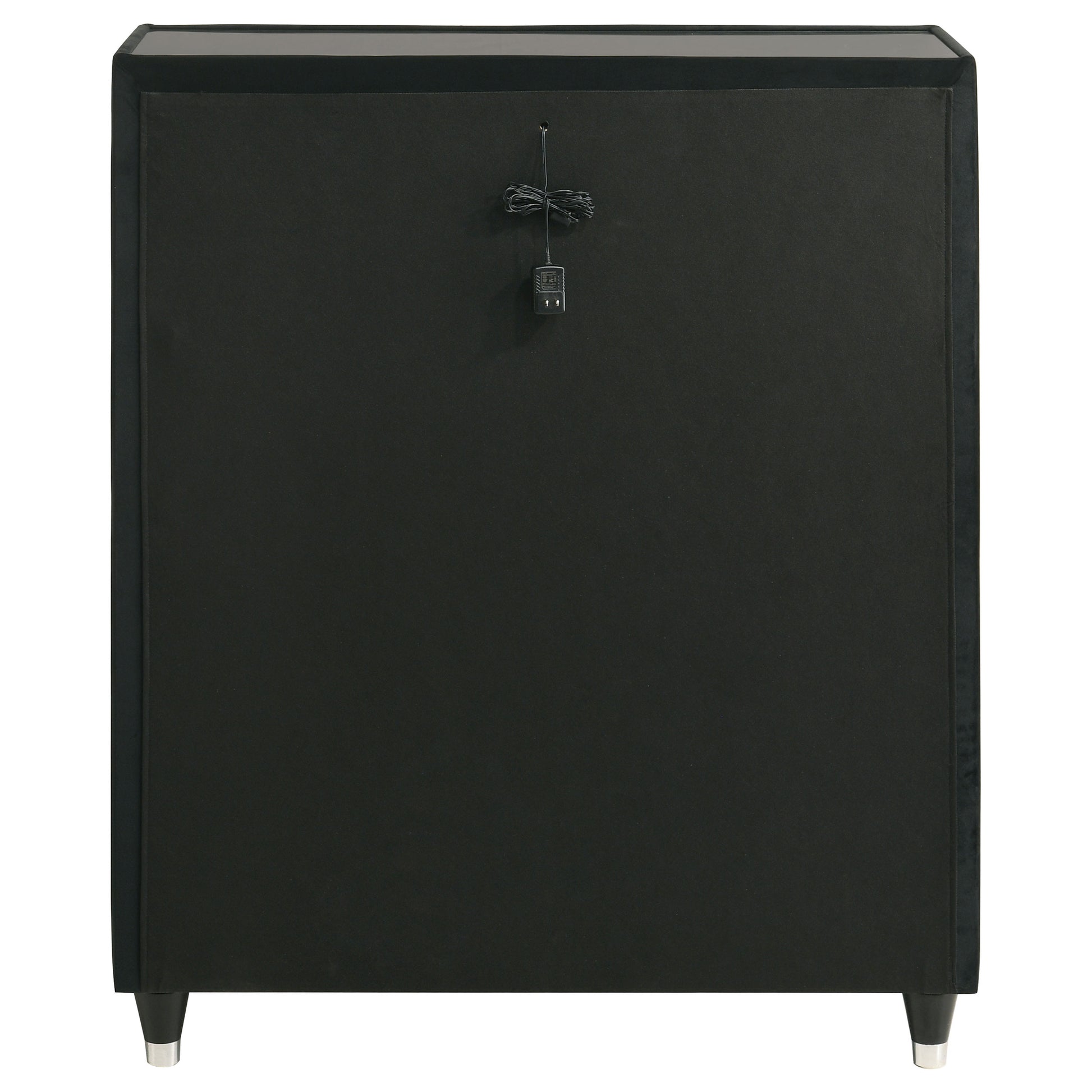 • Five-drawer chest fully wrapped in a black velvet for a layered plush effect