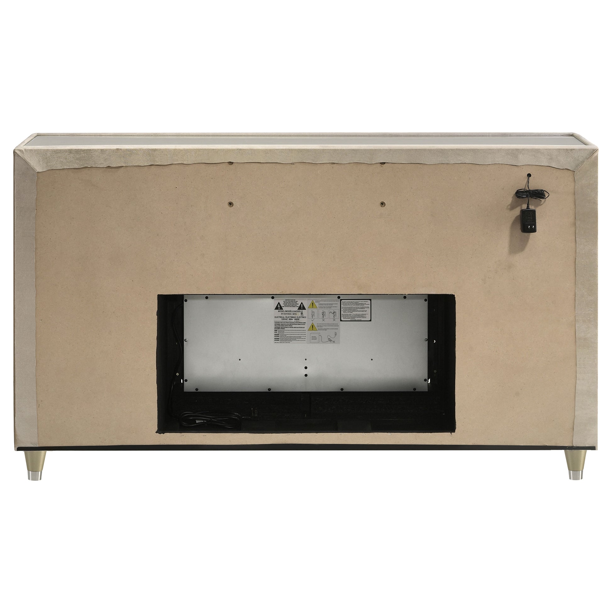 • Eight-drawer dresser with built-in flame visualizer (no heat) and wireless remote control