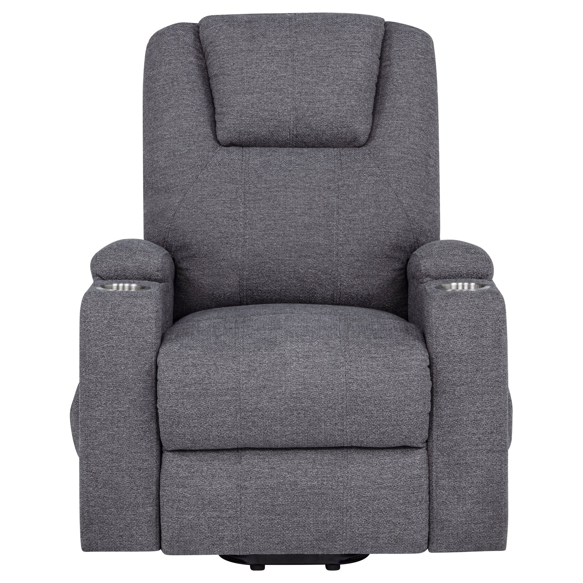 • Power lift massage chair in dark grey chenille offers wired remote-controlled recline and lift