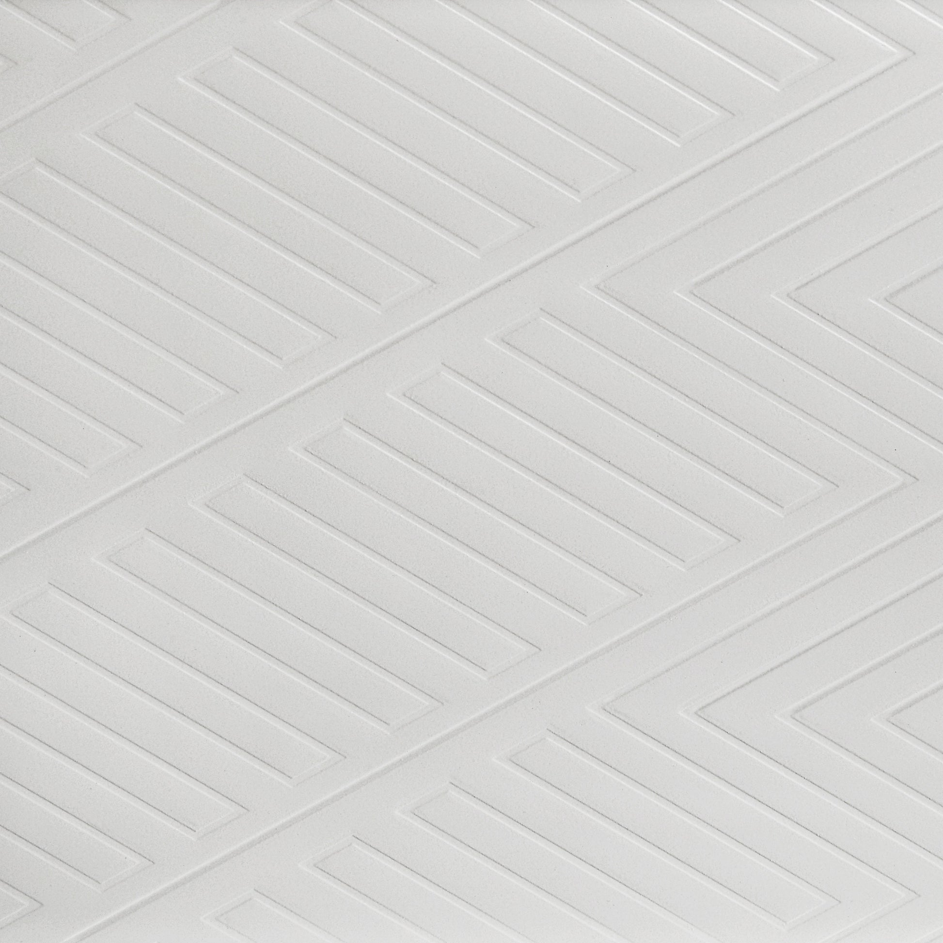 • White finish with picture framed recessed panels and embossed herringbone graphic patterns