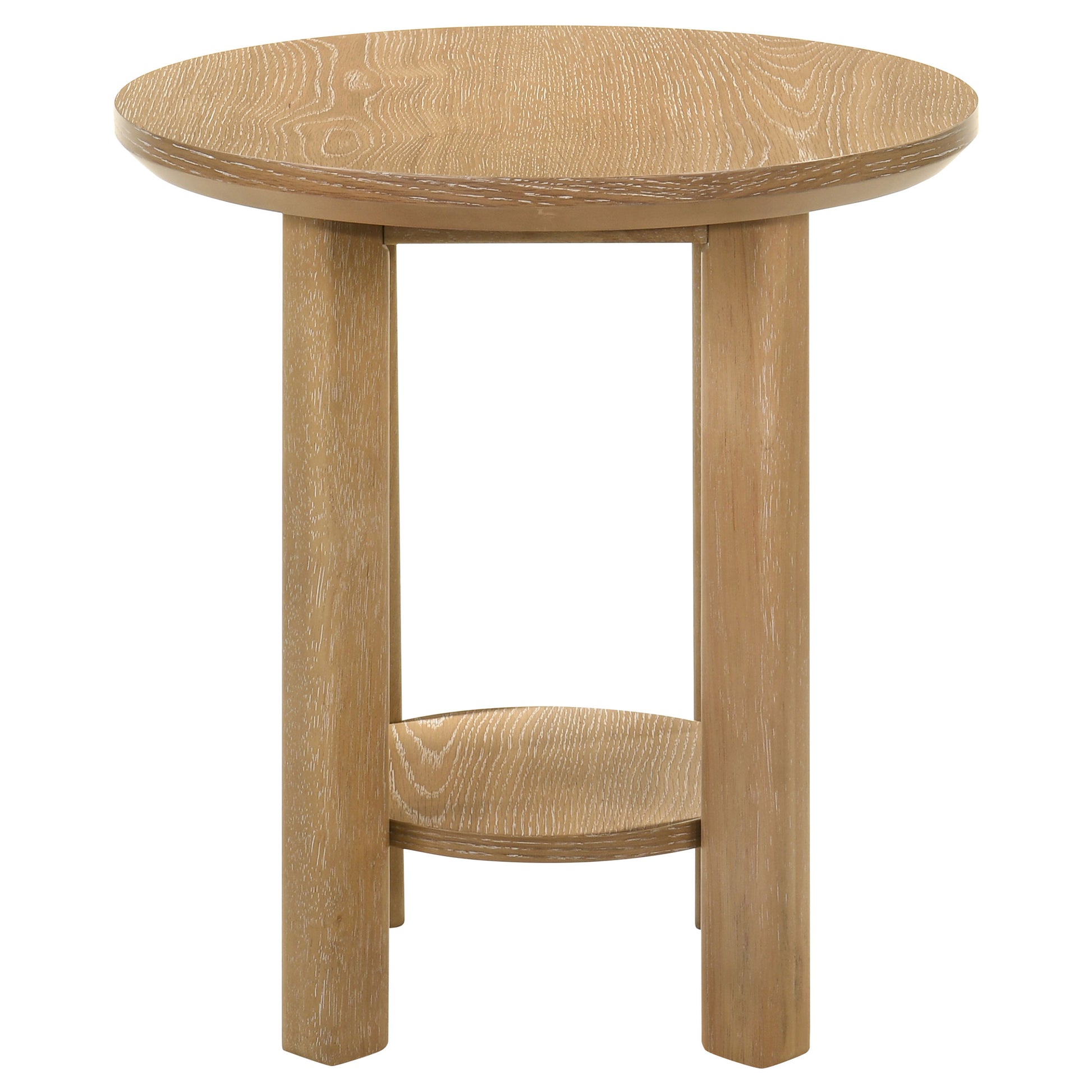 Ottowa Round Wood Side End Table with Shelf Washed Oak