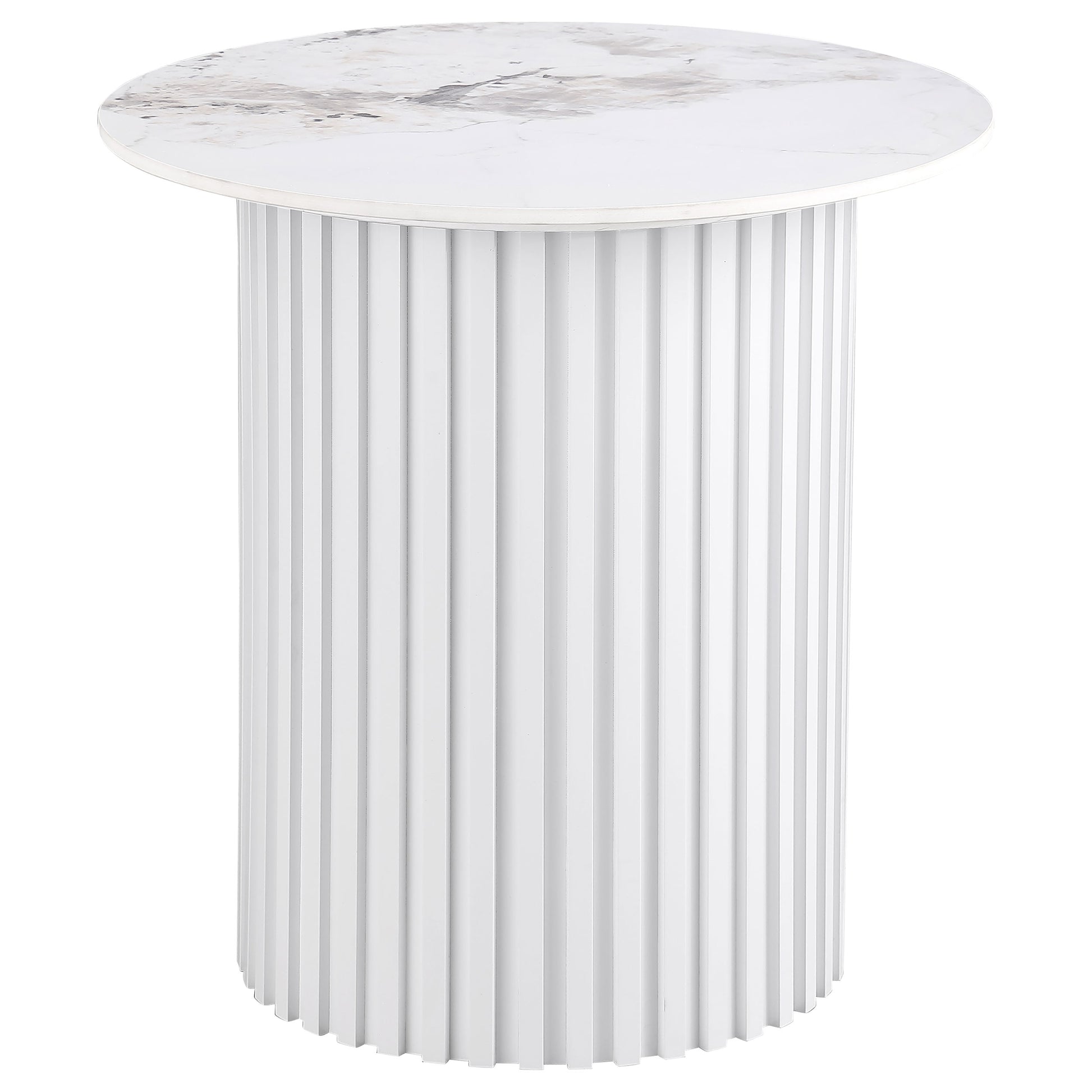 Rowena Round Sintered Stone Coffee Table White Faux Marble
