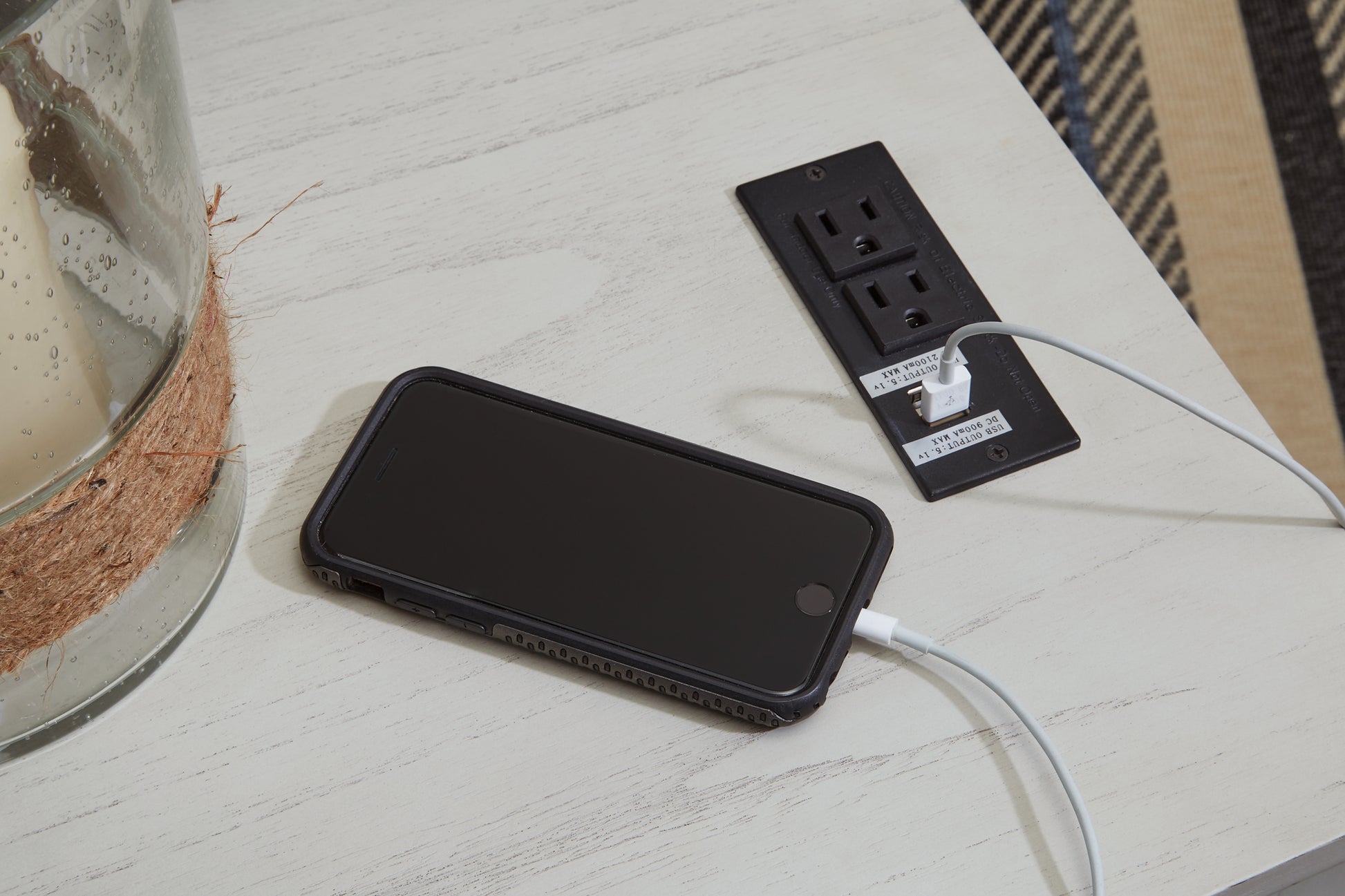 | Details | Made with solid wood, wood veneer and MDF substrate, Whitewashed wood tone finish, Table features storage cabinet, open cubby shelf and pull-out tray, 110V power supply with dual USB charging ports, Power cord included; UL Listed, Due to the use of natural materials, some variations may occur, Assembly required | |