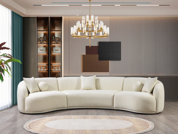 Introducing our Ivory Boucle 3-Piece Curved Sectional, a perfect combination of style and comfort. Crafted with the utmost attention to detail, this sectional features luxurious boucle upholstery, known for its softness and texture. The Ivory color for this set is carefully selected to provide minimal yet post-modern look. Included with this extraordinary set are three square pillows and two round pillows, meticulously designed to complement the sectional's aesthetic and provide additional support. Crafted to perfection, this sectional comes in three seamlessly integrated pieces, including an armless loveseat, a right arm sofa, and a left arm sofa, combining versatility with sophistication.
