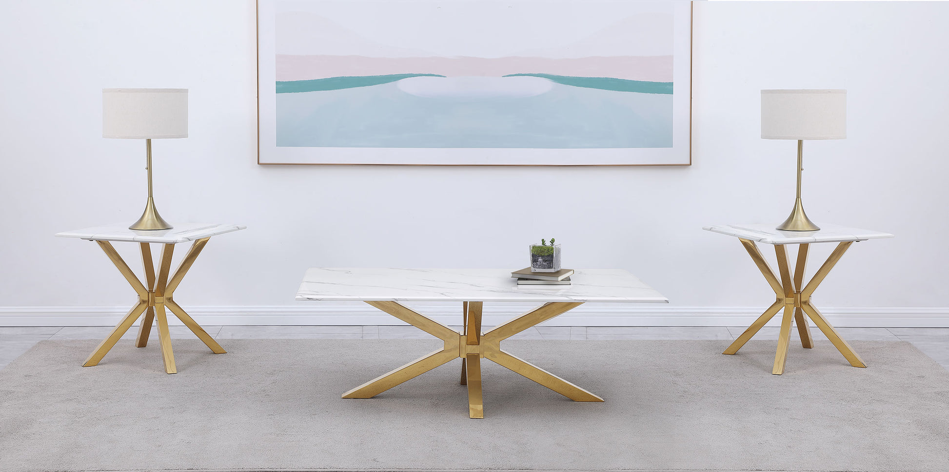 Visalia 3-piece Faux Marble Coffee and End Table Set White