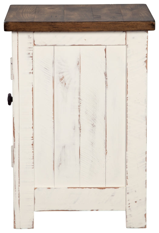 | Details | Made of veneers, wood and engineered wood, Distressed finish; vintage white and aged natural pine color, Single door cabinet with metal grill and hardware, Center shelf | |